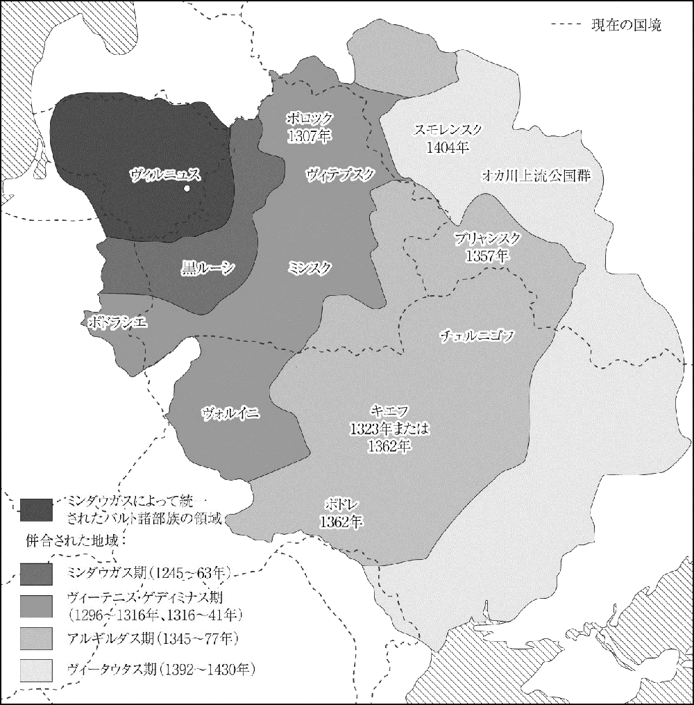 大統領が述べられたとおり、リトアニア大公国は、13-14世紀にベラルーシ、ウクライナ方面に領域を拡大し、15世紀には黒海にまで至ります。当時のリトアニア大公国は異教徒国家であったため、最大のライバルは、ロシアではなく、バルト海沿岸を支配していたドイツ騎士団でした。リトアニア大公国は、ドイツ騎士団に対抗するため、正教文化圏であったベラルーシ、ウクライナ方面に勢力を拡大し、正教の教会組織や文字言語(キリル文字によるルテニア語:後のベラルーシ語)を吸収したとされます。当時リトアニア大公国に文字言語はなく、リトアニア大公国の行政機関はルテニア語で記録文書を作成しました。その後、リトアニア大公はポーランドと同盟を結ぶためにカトリックに改宗しますが、ベラルーシ、ウクライナ地方はリトアニア大公国の中で正教文化を維持し、リトアニア・ポーランド連合軍が1410年のグルンヴァルトの戦いでドイツ騎士団を壊滅した際にも、ベラルーシ、ウクライナ地方出身の軍勢が貢献したとされます。